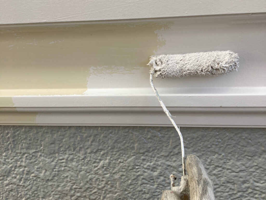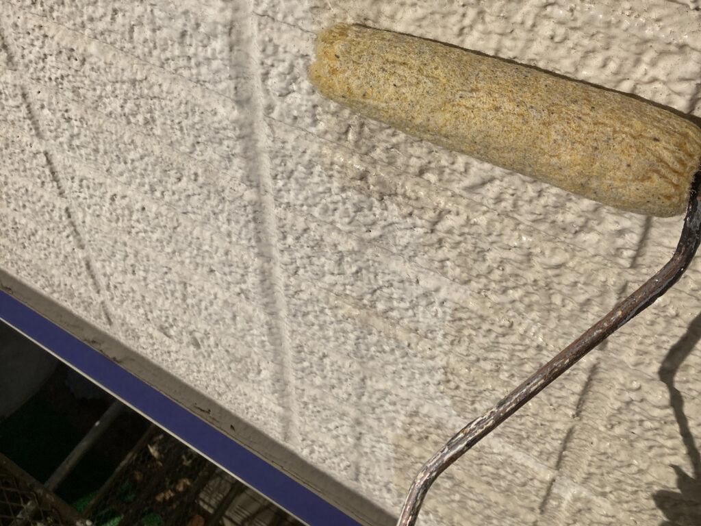 凹凸模様を活かしながら、ローラーで丁寧に塗り込み。